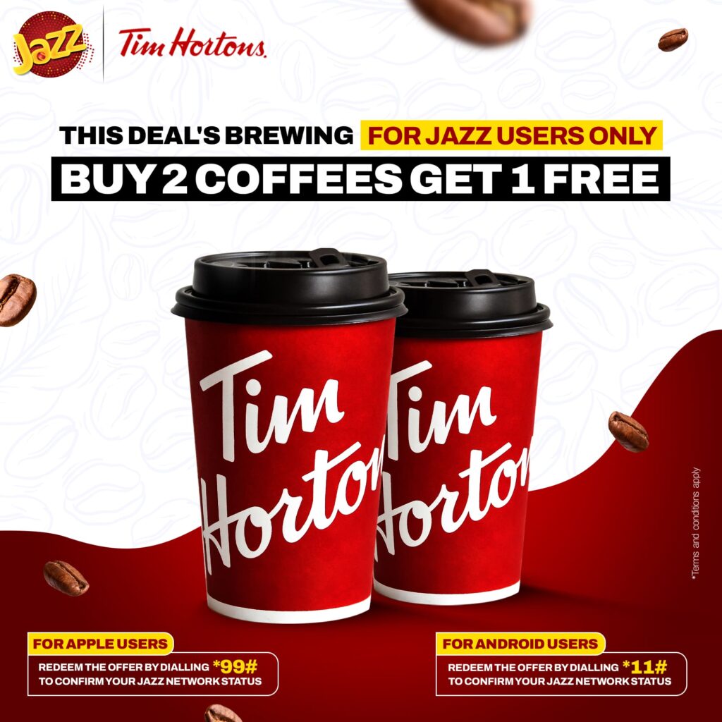 Jazz users buy 2 coffees and get 1 FREE!To redeem, dial 99# (Apple) or 11# (Android) to confirm your Jazz status and claim your cup today.